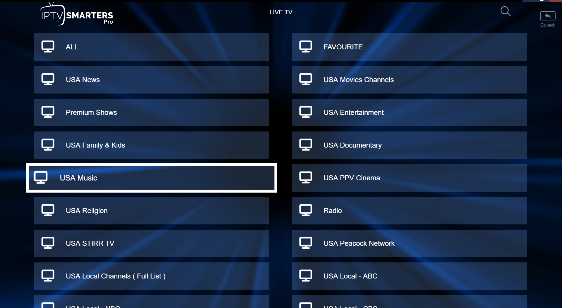 Now click on the “Live TV” icon, select channels group then the channel you want to watch.